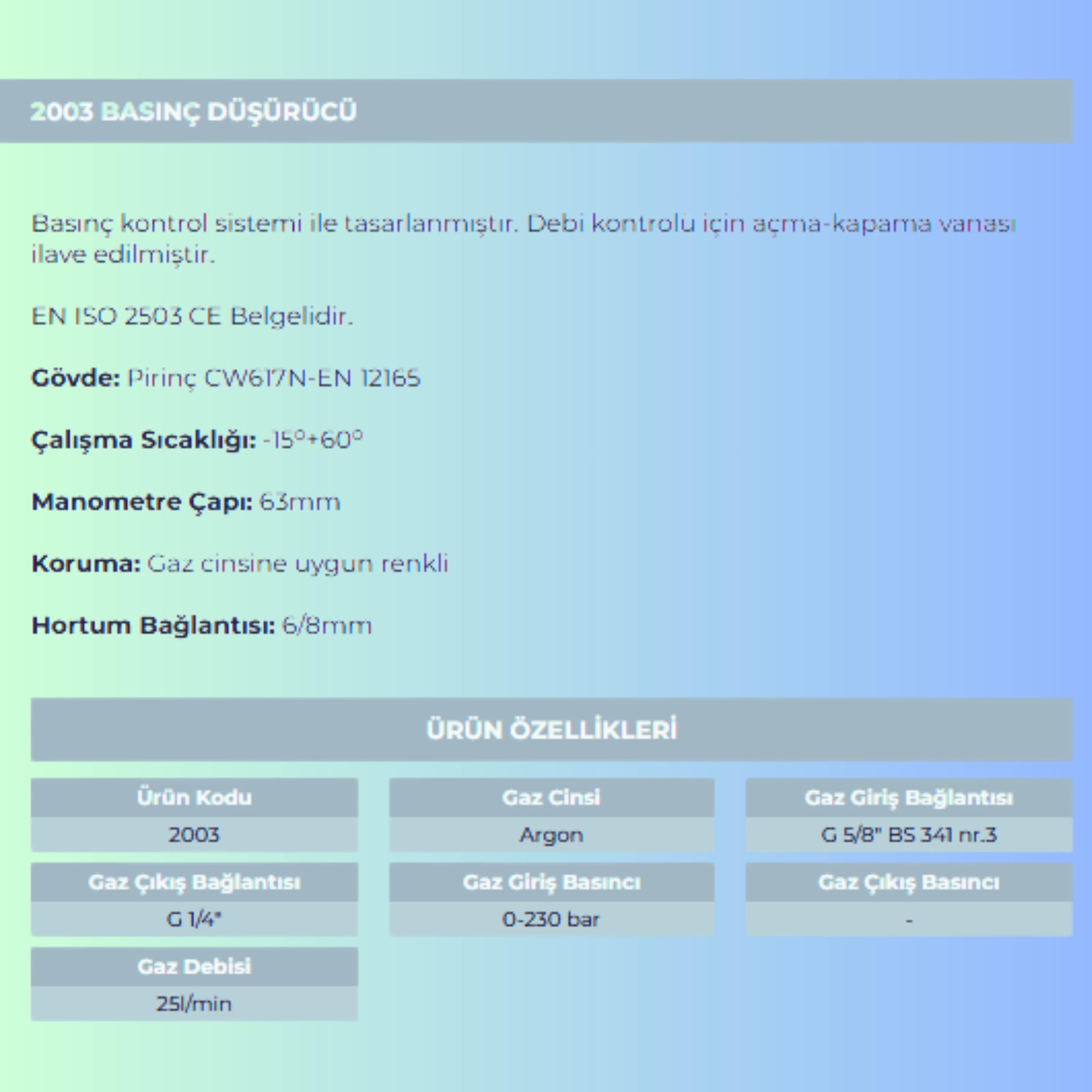 EN ISO 2503 CE Belgelidir.