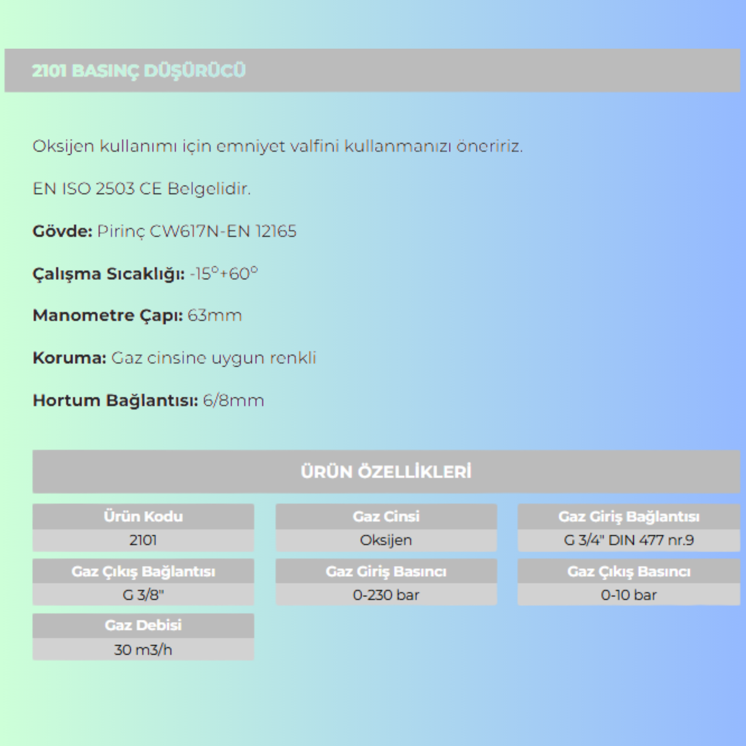 Oksijen kullanımı için emniyet valfini kullanmanızı öneririz.