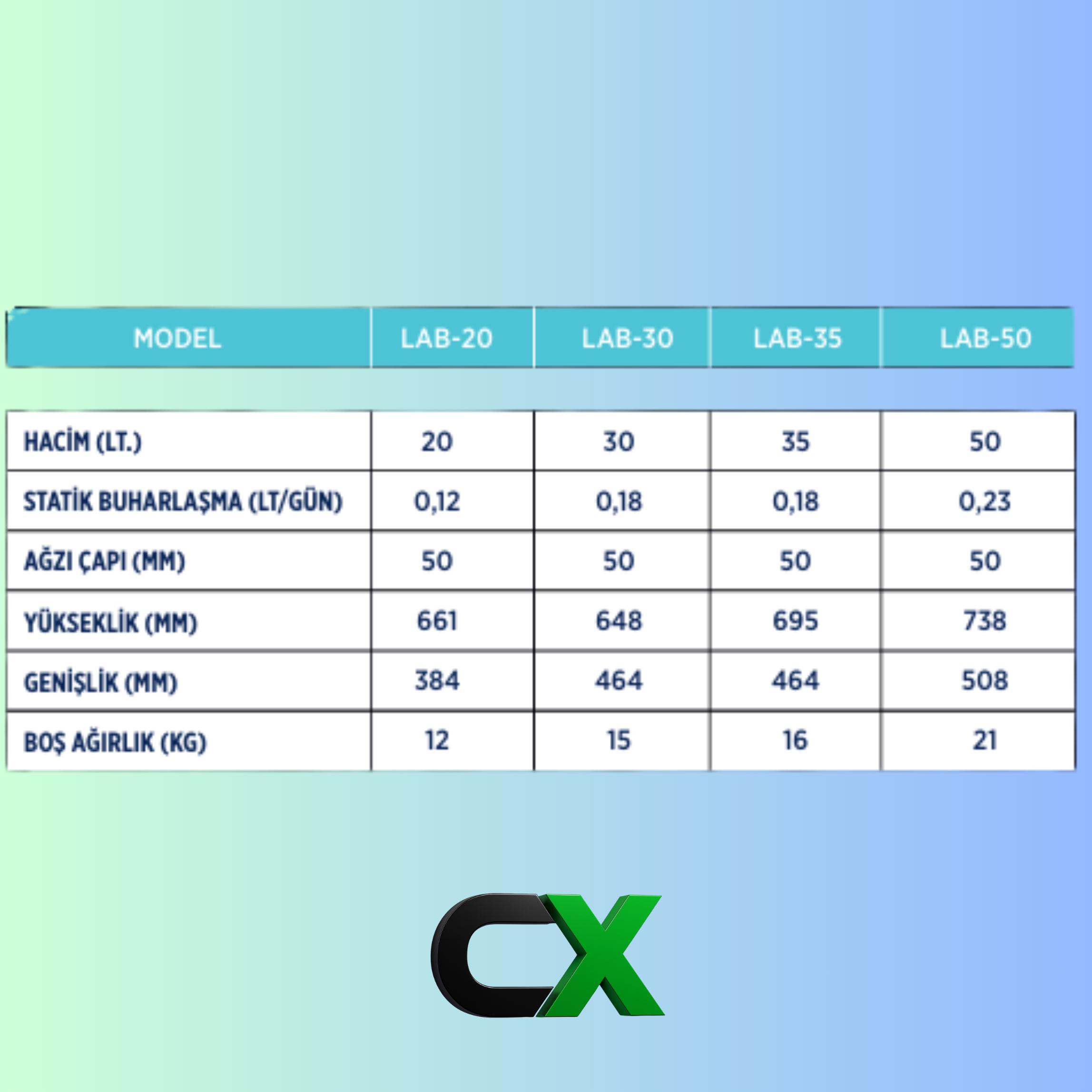 3 litreden 50 litreye kadar 6 farklı kapasite alternatifi.