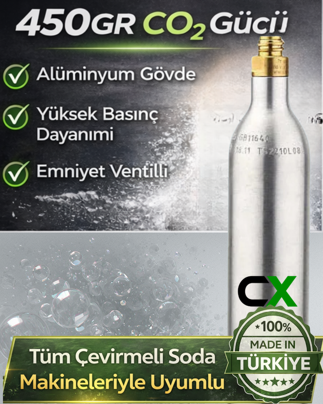 - 450 gr co2 kapasiteli.