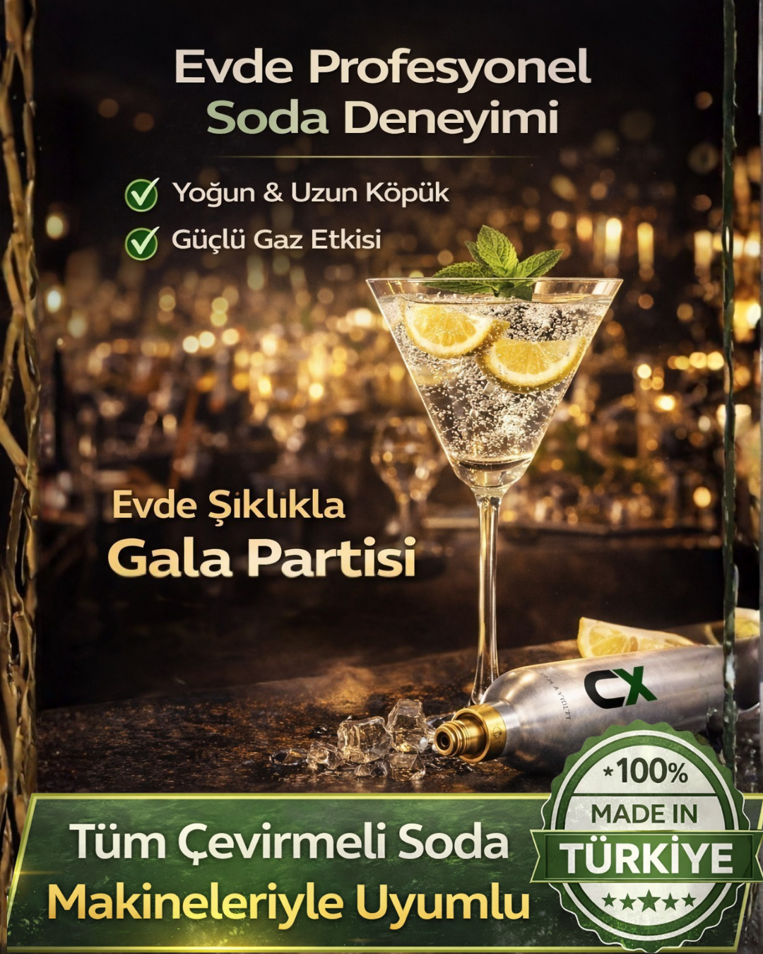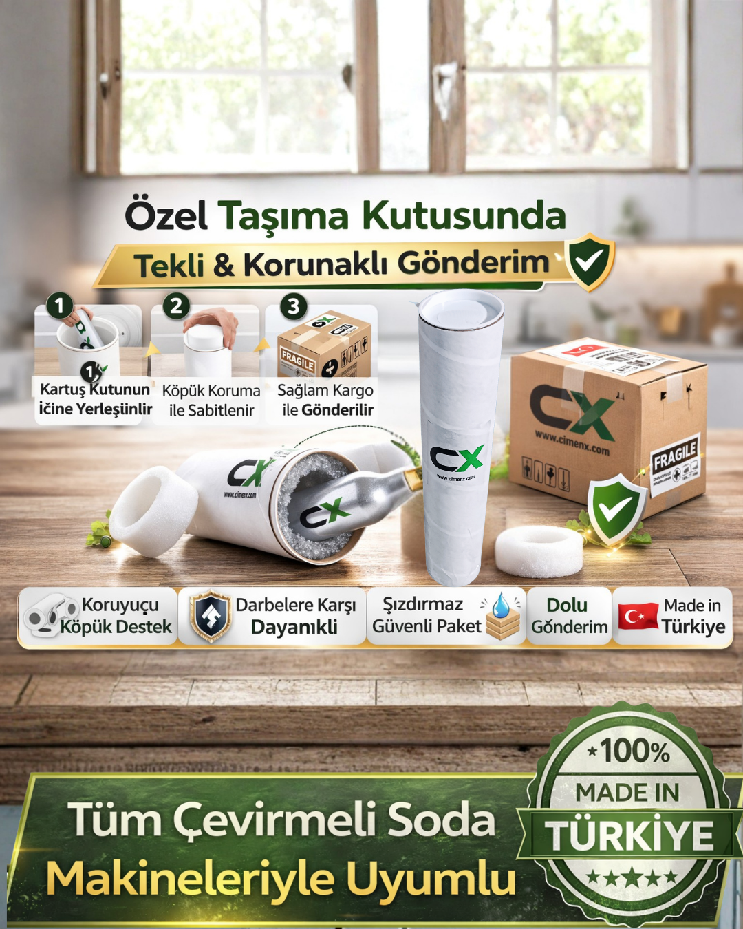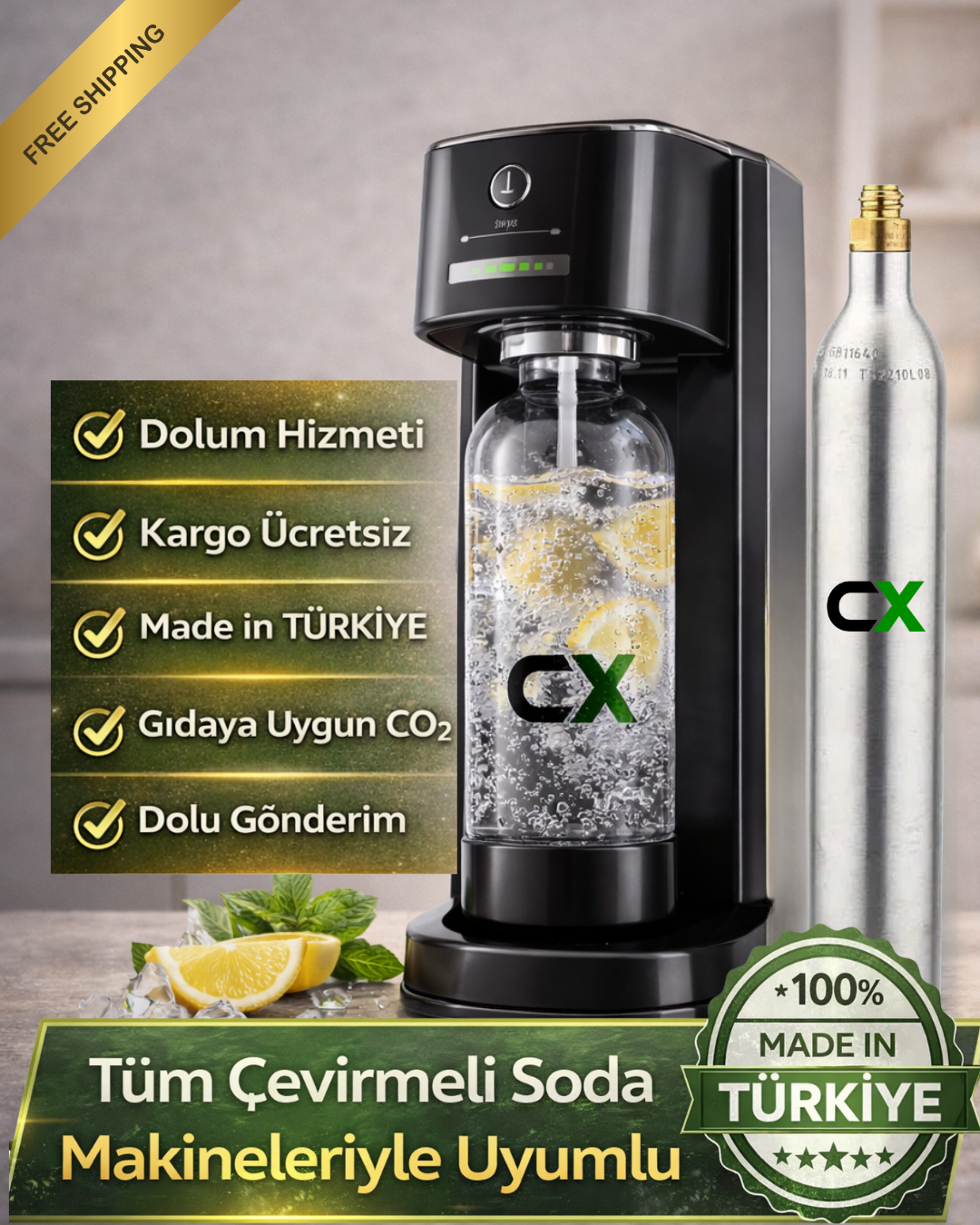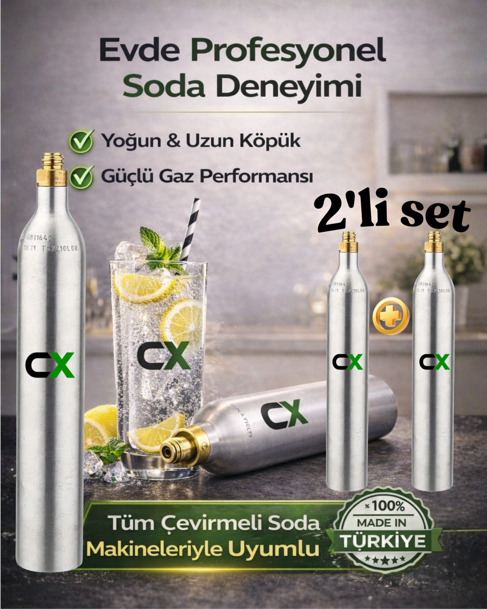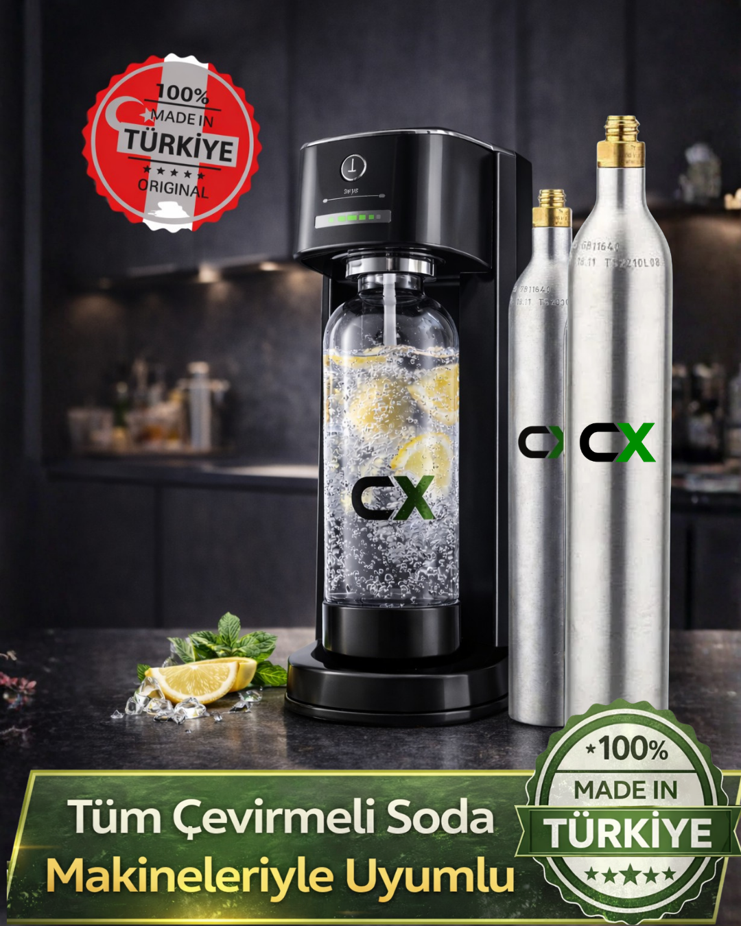- SodaStream, Conax, Karaca vb firmaların soda makinelerine uyumludur.